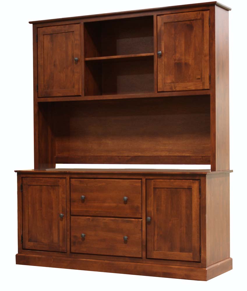 This Alder Credenza Hutch is part of the Modular Home Office Collection. The classic design of this credenza hutch adds a timeless quality to any home office. Crafted from high-quality American Alder wood, it ensures a lifetime of strength and durability. Enjoy quality furniture from Archbold, where all pieces are finished by Amish craftsmen and are also proudly made in the USA.