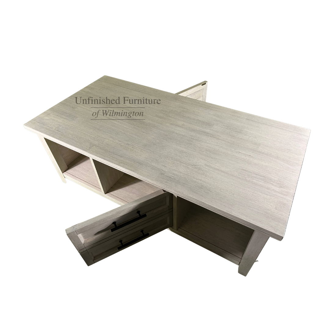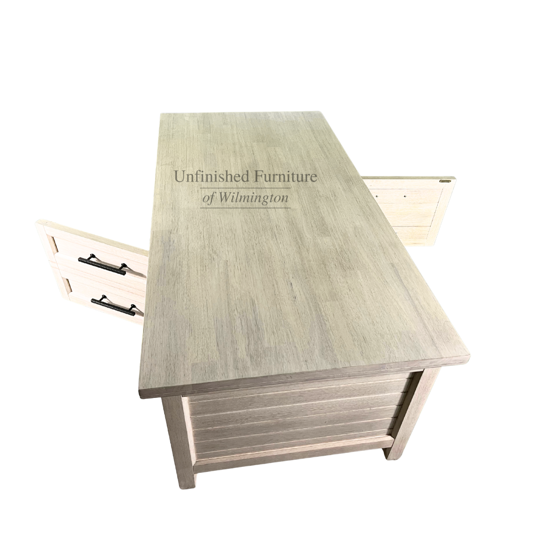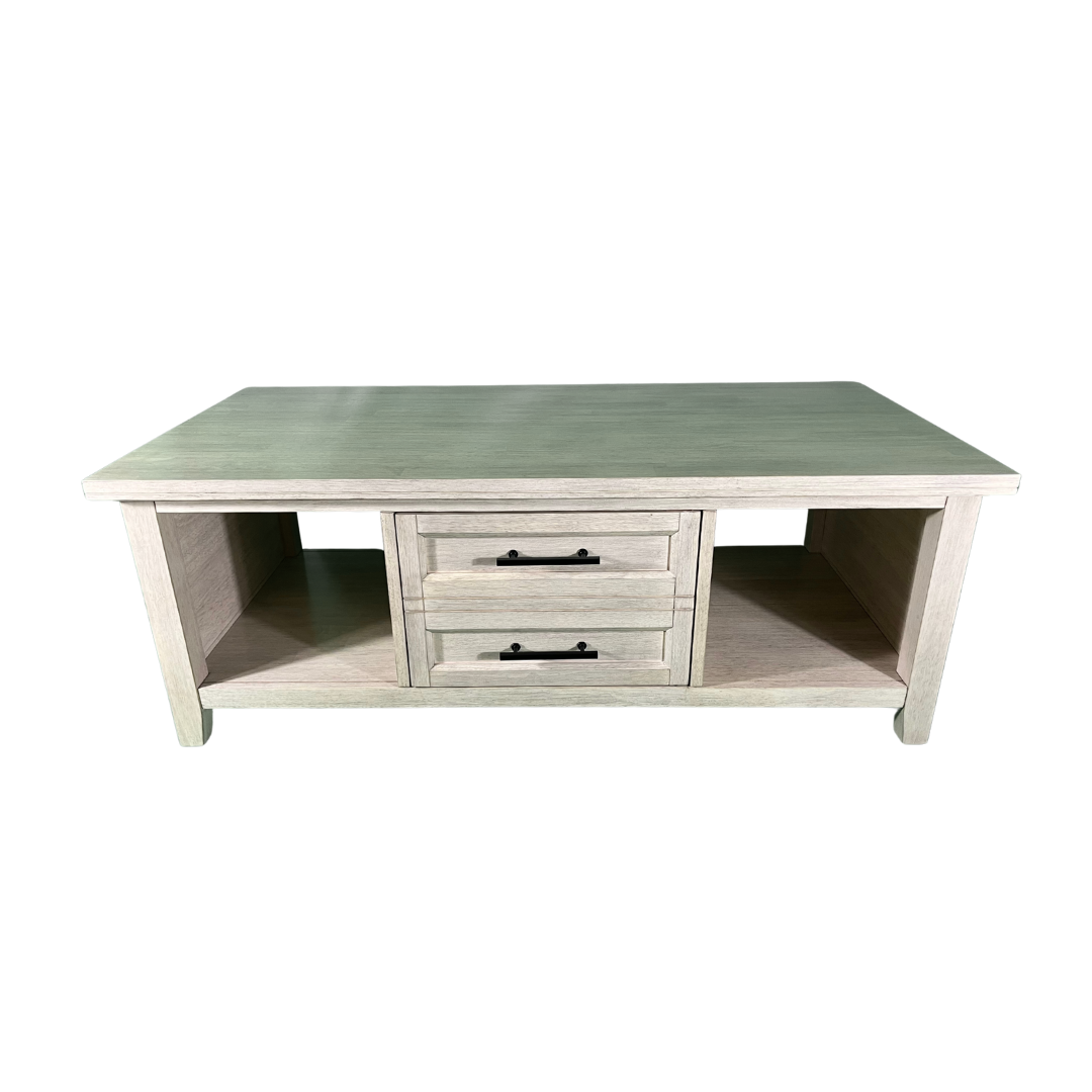 The Sanibel Coffee Table features a unique design that looks beautiful in any living space. The center doors gives the appearance of two drawers, but open to reveal a concealed storage area that is accessible on both sides. The timeless look complements any home decor style ranging from traditional and transitional to cottage and modern farmhouse. The beadboard sides also add visual interest with a casual feel. The Sanibel Coffee Table ships unfinished or in a Macchiato finish (96). The finished piece features solid zinc die-cast hardware which offers a beautiful contrast to the cool finish. Made from solid, eco-friendly Parawood, this coffee table offers excellent strength and durability. Pair this coffee table with any of the pieces in the Sanibel Collection or combine with other collections to create an eclectic look. For the same look in your bedroom, view the Sanibel Bedroom Collection.