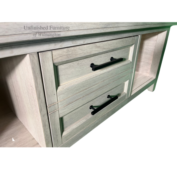 The Sanibel Sofa Table features a unique design that looks beautiful in any living space. It offers two drawers for concealed storage with two shelves for display. The drawers feature English dovetail construction and full extension, ball bearing glides. The middle shelf is also adjustable allowing you to customize the space between the drawers and the fixed bottom shelf. The timeless look complements any home decor style ranging from traditional and transitional to cottage and modern farmhouse. In addition, the beadboard sides add visual interest with a casual feel. The Sanibel Sofa Table ships unfinished or in a Macchiato finish (96). The finished piece also features solid zinc die-cast hardware which offers a beautiful contrast to the cool finish. Made from solid, eco-friendly Parawood, this table offers excellent strength and durability. Pair this sofa table with any of the pieces in the Sanibel Collection or combine with other collections to create an eclectic look. For the same look in your bedroom, view the Sanibel Bedroom Collection.