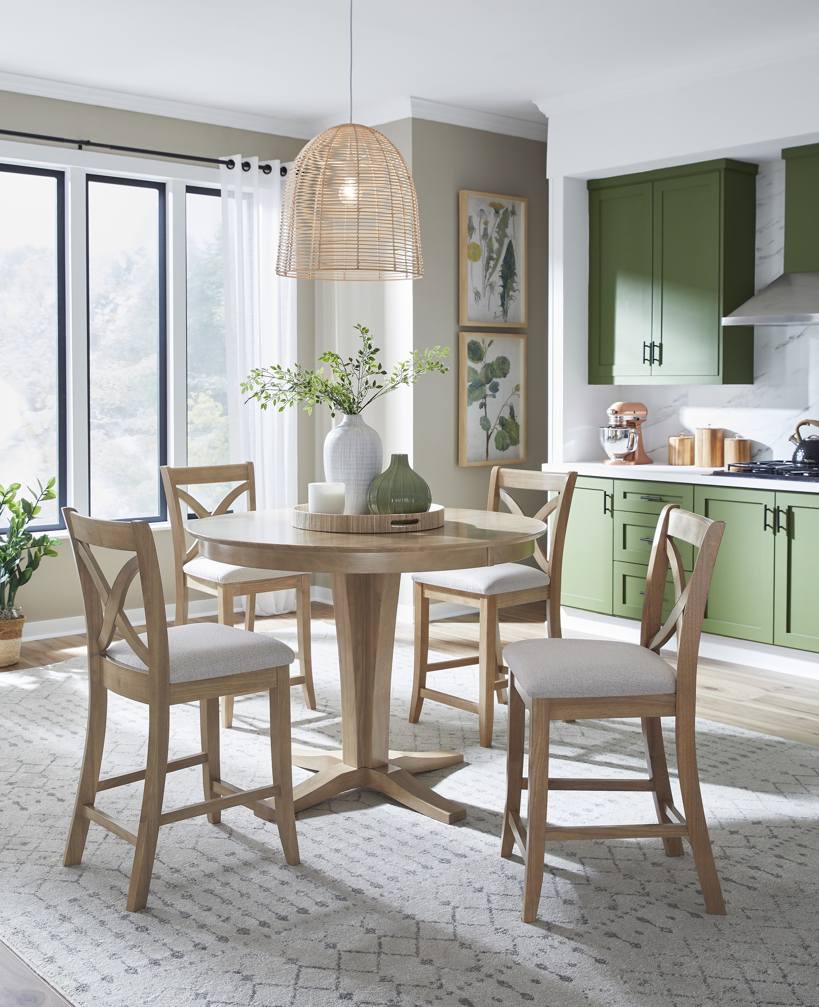 This Round Table offers the perfect option for your dining room or kitchen. Part of the Cosmopolitan Collection, this high dining table is paired with the 36″ Verona Pedestal Base. It is available in four factory finishes: Heather Gray & White, Taupe Gray, Coal & Black, and Honey. Enjoy the fine craftsmanship of John Thomas with a custom table that is beautifully made, long-lasting, and affordable.