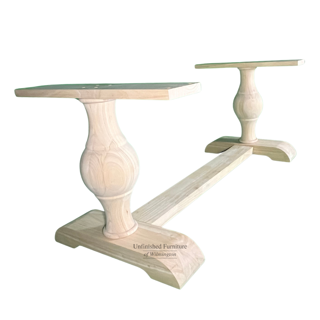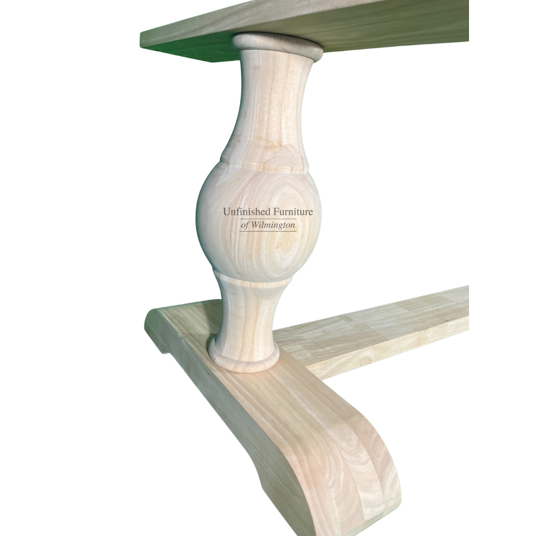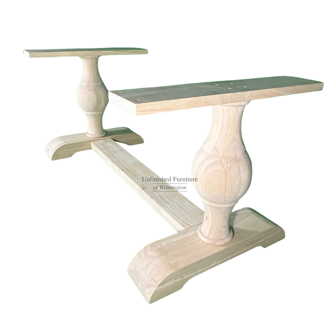 The Grandeur Table Base works well with a large extension table top. This gently curved base offers excellent stability with a subtle elegance that provides a clean, sleek look. Use this table base in a formal dining room or in a large casual kitchen. Made from solid, eco-friendly Parawood, this table base ensures maximum strength and durability. It is available unfinished, but also easily stains or paints to match your existing furniture or add a pop of color to your space. It’s versatile design allows for use with any home decor. Hardware and stretcher are included. You are sure to love this new base from one of the leading manufacturer’s of solid wood furniture.